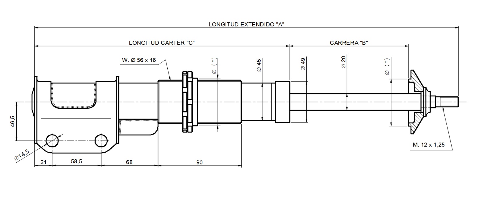(**) La carrera puede modificarse con la colocación de tope interno.