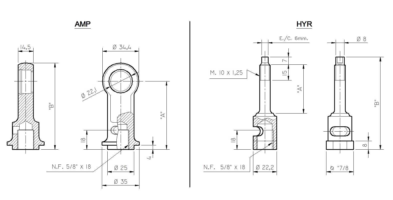 Disponibles en modelos espiga y ojal (para cojinete rotulado).